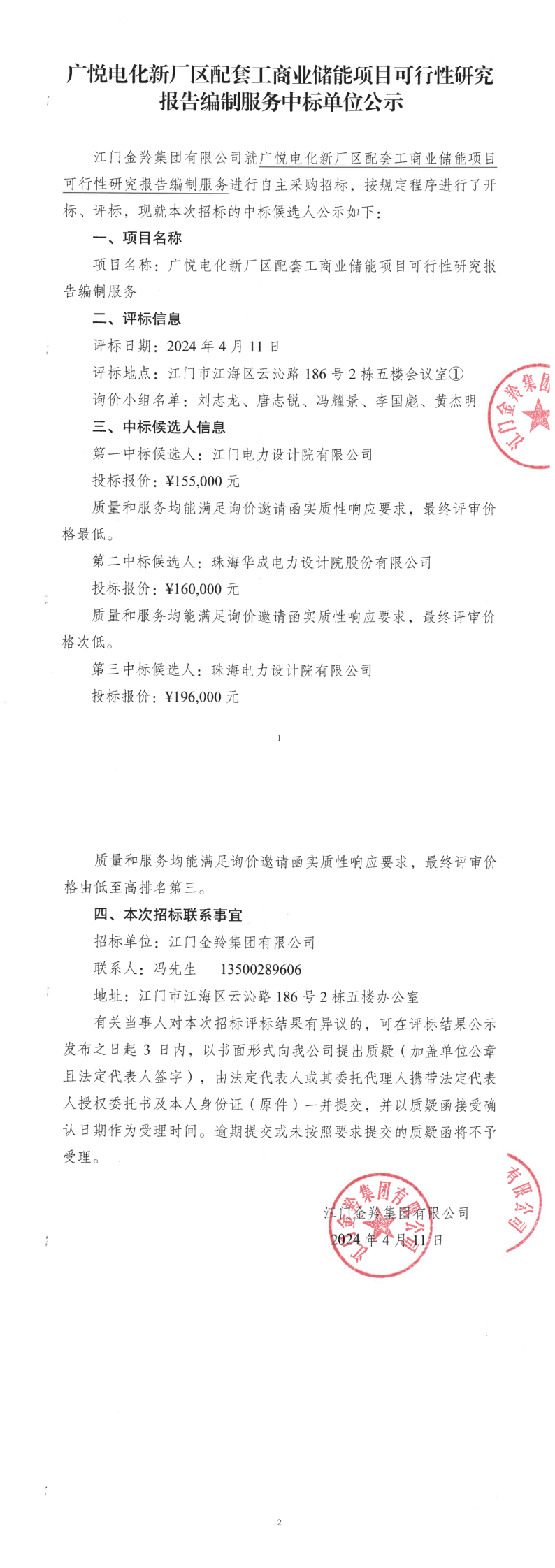 广悦电化新厂区配套工商业储能项目可行性研究报告编制服务中标单位公示