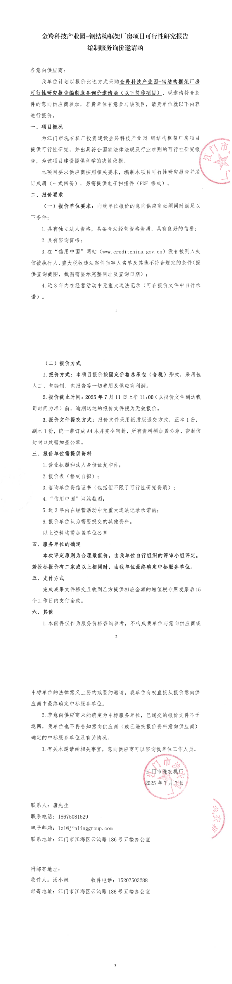 金羚科技产业园-钢结构框架厂房可行性研究报告编制服务询价邀请函