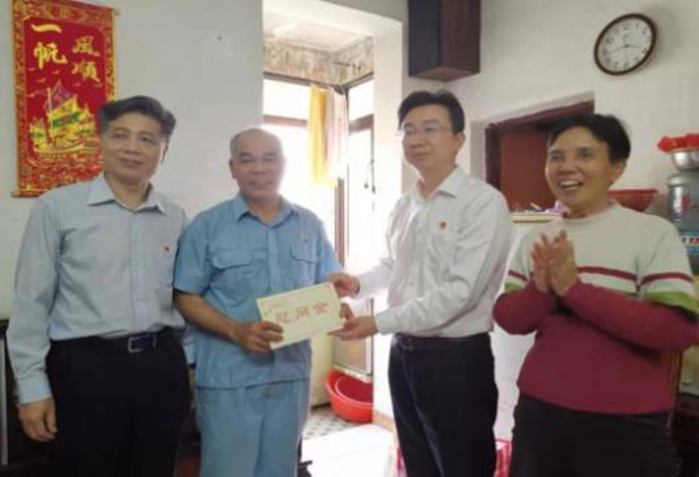 1月7日上午,市委党校校委委员叶开枝等慰问三菱重工金羚空调器有限公司困难职工。