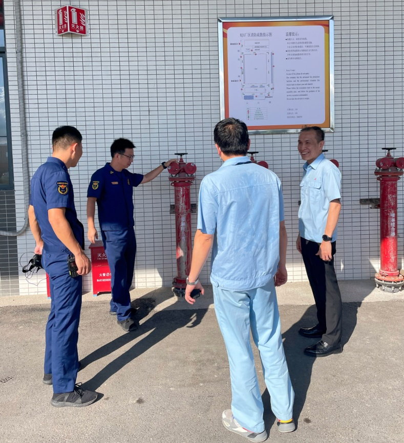 在检查的同时,文其明结合工厂实际,为消防队员们讲解了紧急情况下处理问题的应对方法,通过模拟经典案例和动作示范教育,进一步提升消防队员的应急救援能力。