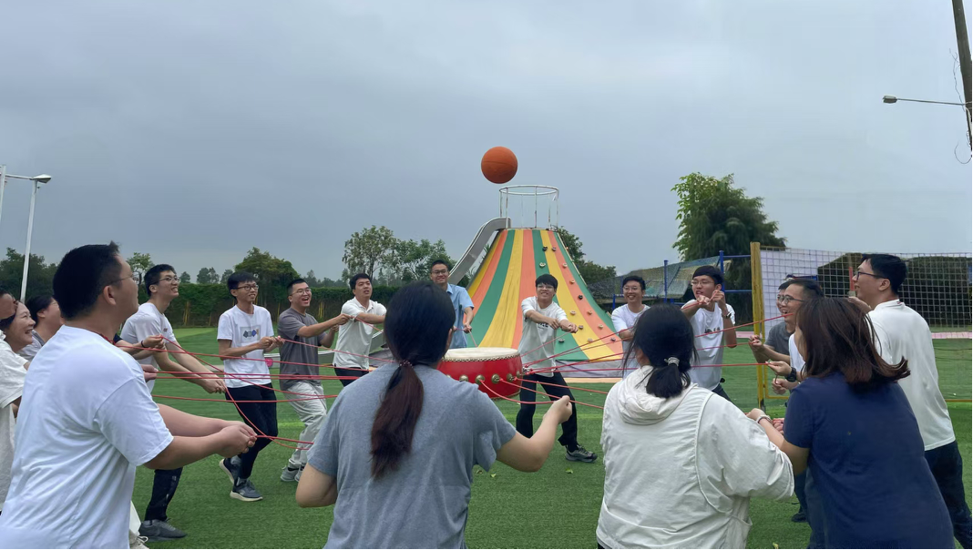 在团建拓展基地,团员青年们共同参与了“旱地龙舟”“同心击球”“运转乾坤”等一系列精彩纷呈的团建项目。在这些充满挑战与合作的项目中,大家通过明确的角色分工、精心的策略制定以及默契的协同执行,深入体会到“目标同向、思想同频、行动同步”的团队协作精神。