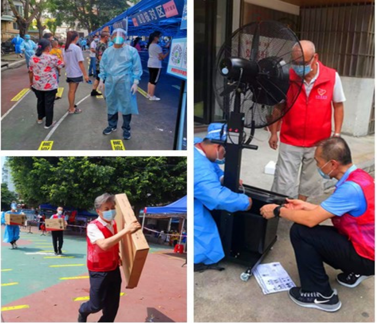 此外,金羚集团领导干部深入核酸监测点、社区等疫情防控前线,走访慰问社区等工作人员,向他们赠送夏季“清凉饮料”和多台水冷空调扇,感谢他们不辞劳苦,为人民生命安全保驾护航。