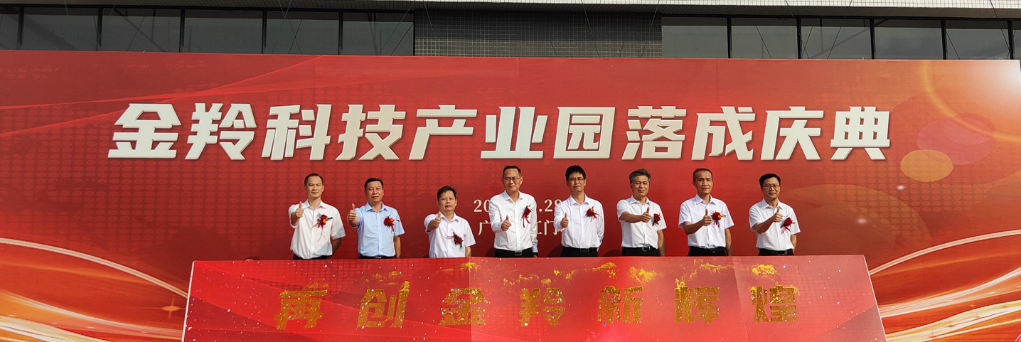 江门金羚集团有限公司党委书记、董事长、总经理罗发归同志宣布金羚科技产业园落成并致辞,随后,江门市城市发展投资集团有限公司党委书记、董事长张义栋等领导为金羚科技产业园注金沙启动,礼炮齐鸣,共同庆祝,寓意金羚集团兴隆繁盛、吉祥如意。