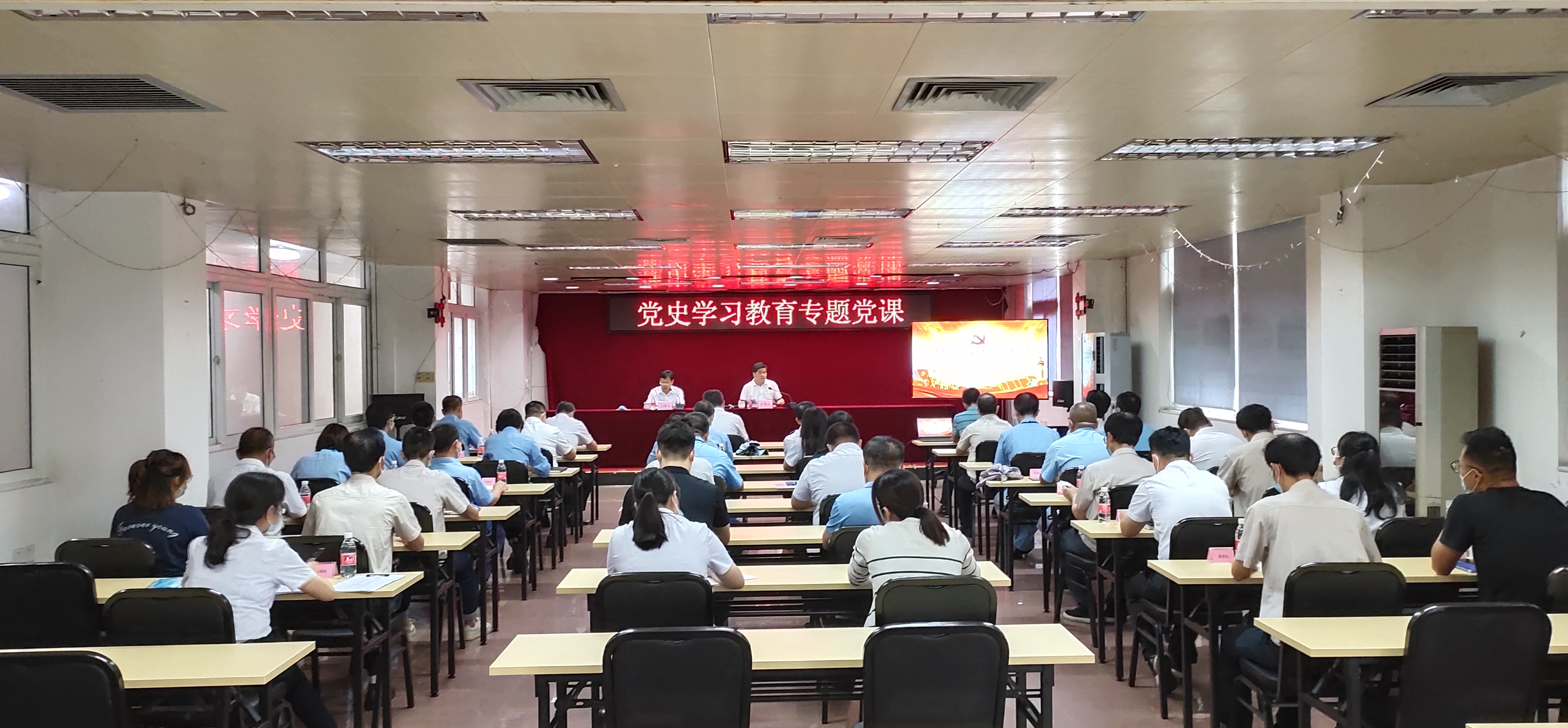 李华杰同志从改革开放43年的历史进程、辉煌成就、经验启示、以改革开放精神开拓发展国企新局等四个方面,为大家讲述了改革开放经历的5个阶段,阐述了改革开放所带来的沧桑巨变,以及在党史学习教育中续写新阶段国企改革高质量发展新篇章的重要意义。