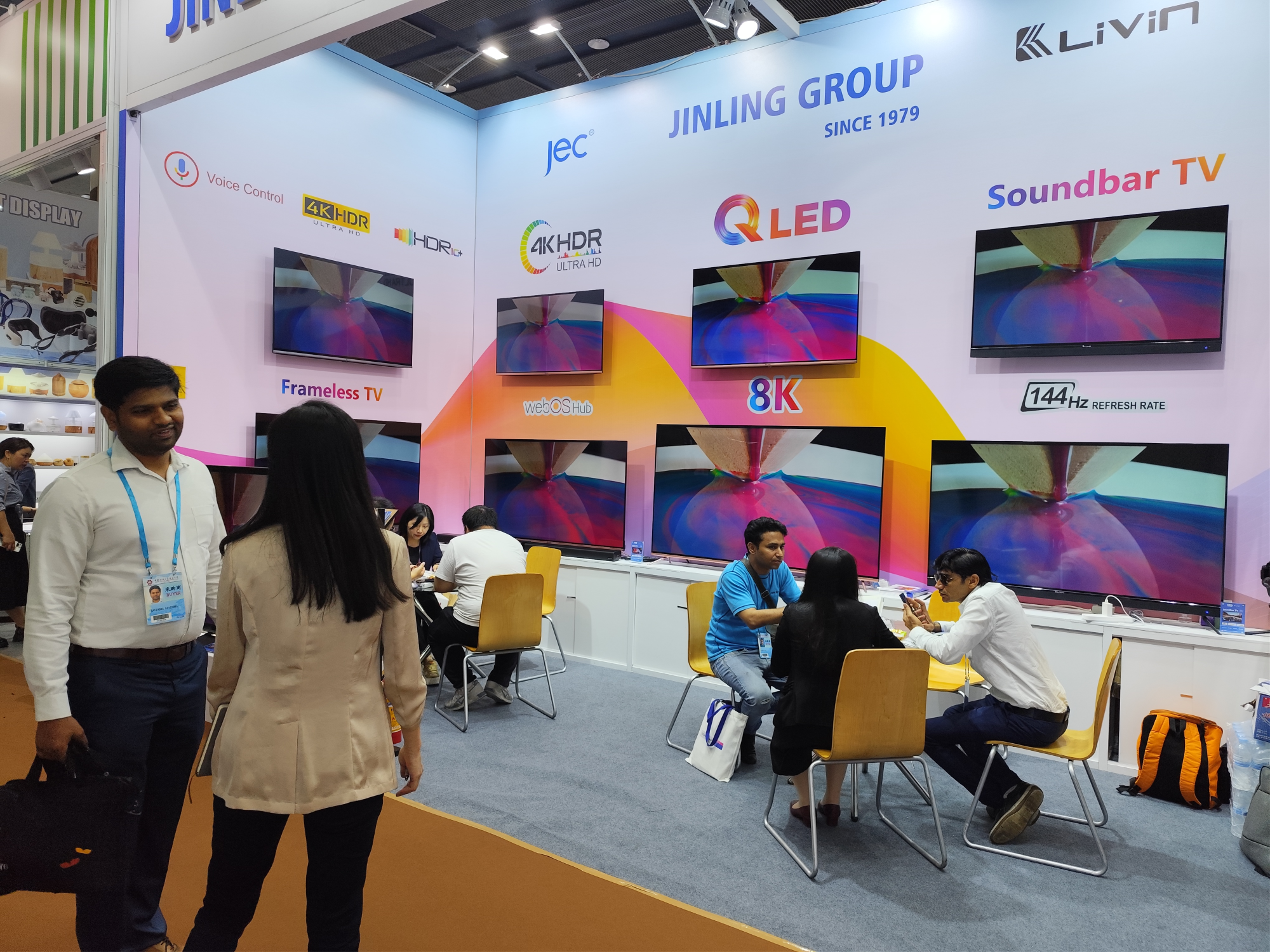 广交会“老面孔”展现“新面貌”,产品就是最好的“名片”。金羚集团为本届广交会做了充分的准备,展出了QLED TV和MINI LED TV系列电视机新产品,吸引了众多中外客商前来参观洽谈,展位前的工作人员都忙得不亦乐乎,不少客户表达了要到工厂参观考察进行深入合作的意向。