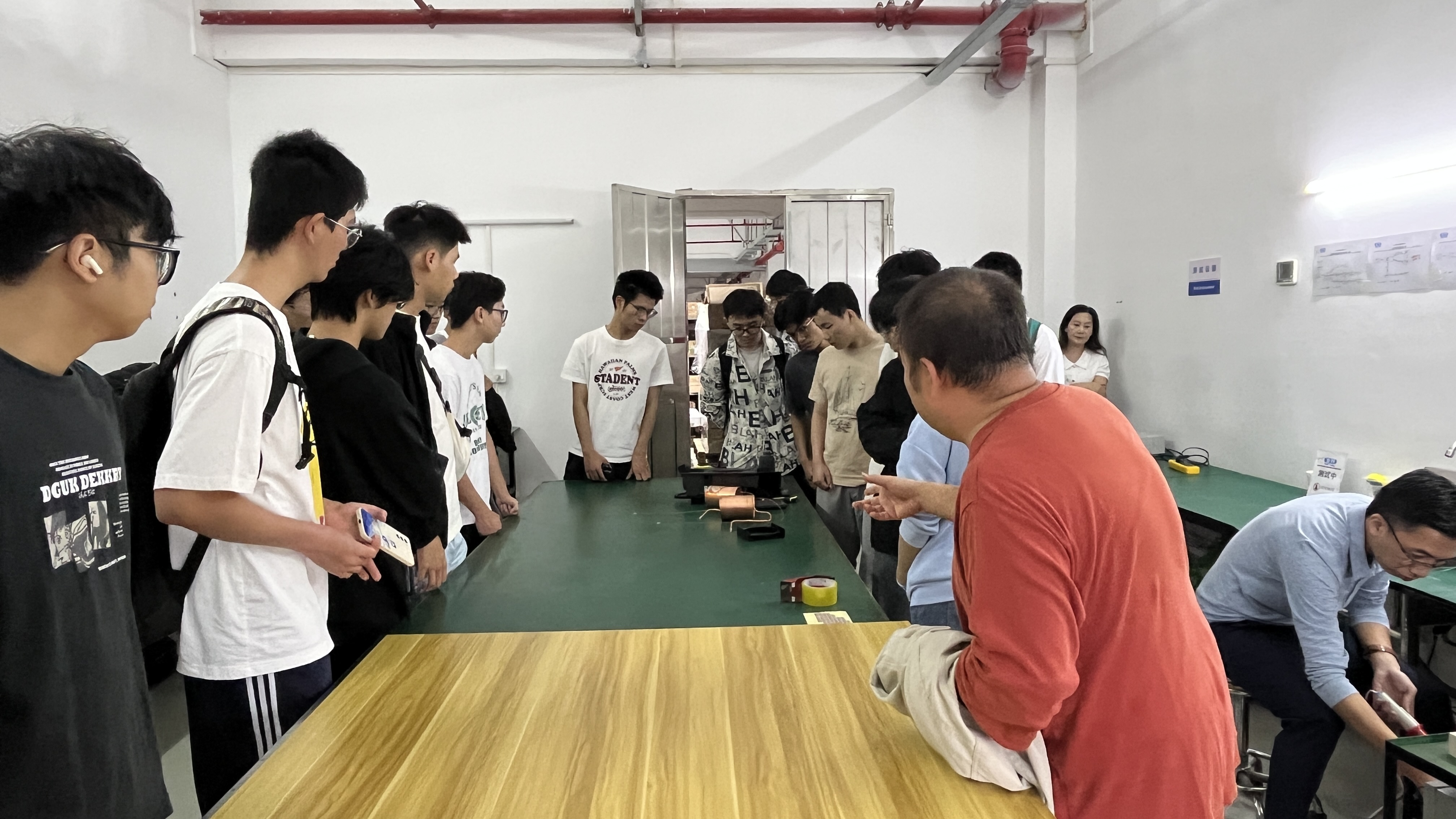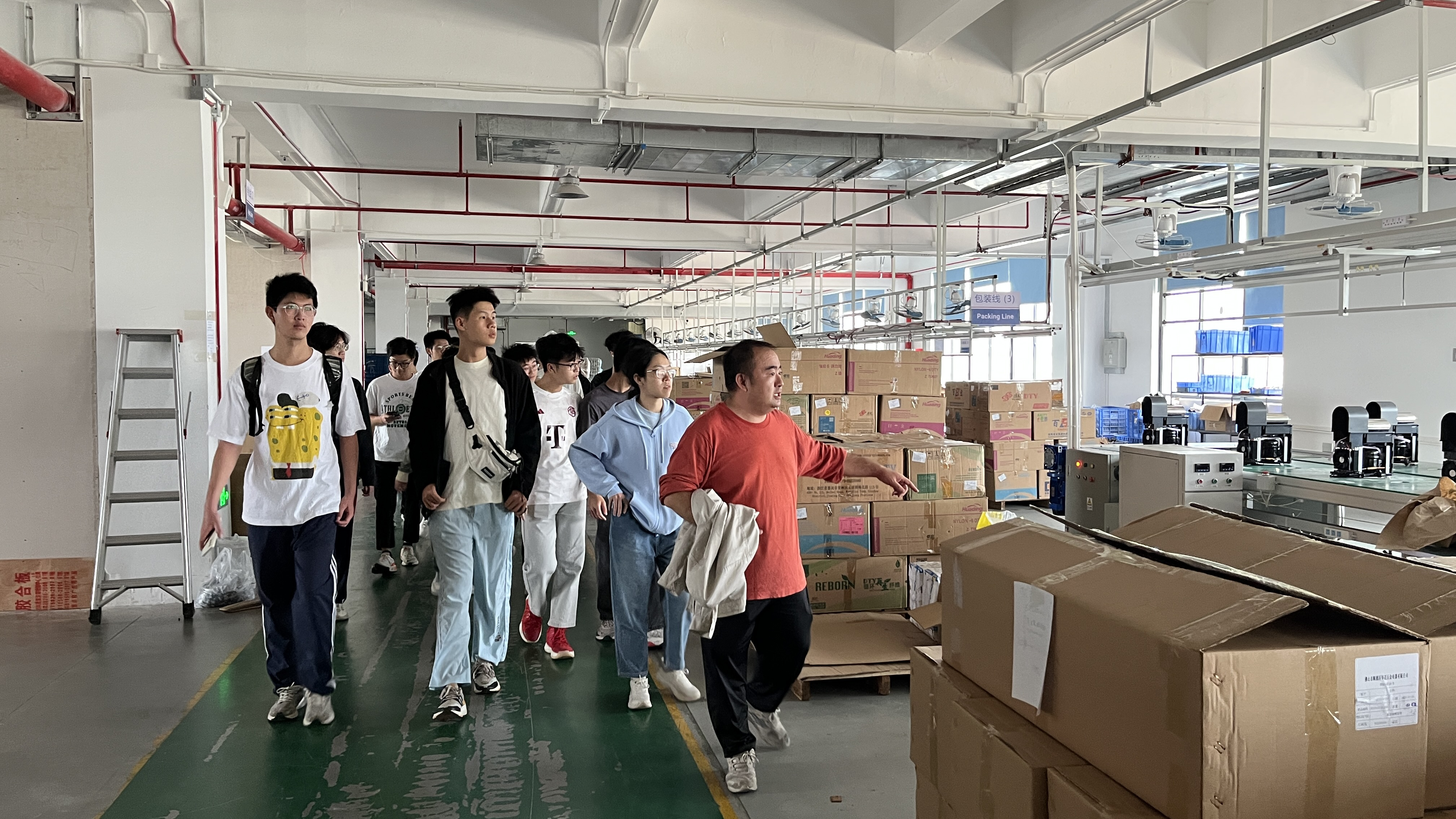 在江门金羚集团技术科副科长秦钢及相关人员的陪同下,师生们首先参观了公司产品展厅,系统了解了江门金羚集团的发展历程、业务板块与技术创新成果。随后,秦钢带领大家深入生产一线,详细介绍了家电产品的生产流程,同时现场为同学们答疑解惑。通过近距离观察生产设备、工艺流程与核心工序,同学们打破了对家电制造的“纸面认知”,建立起更为直观和立体的行业理解。