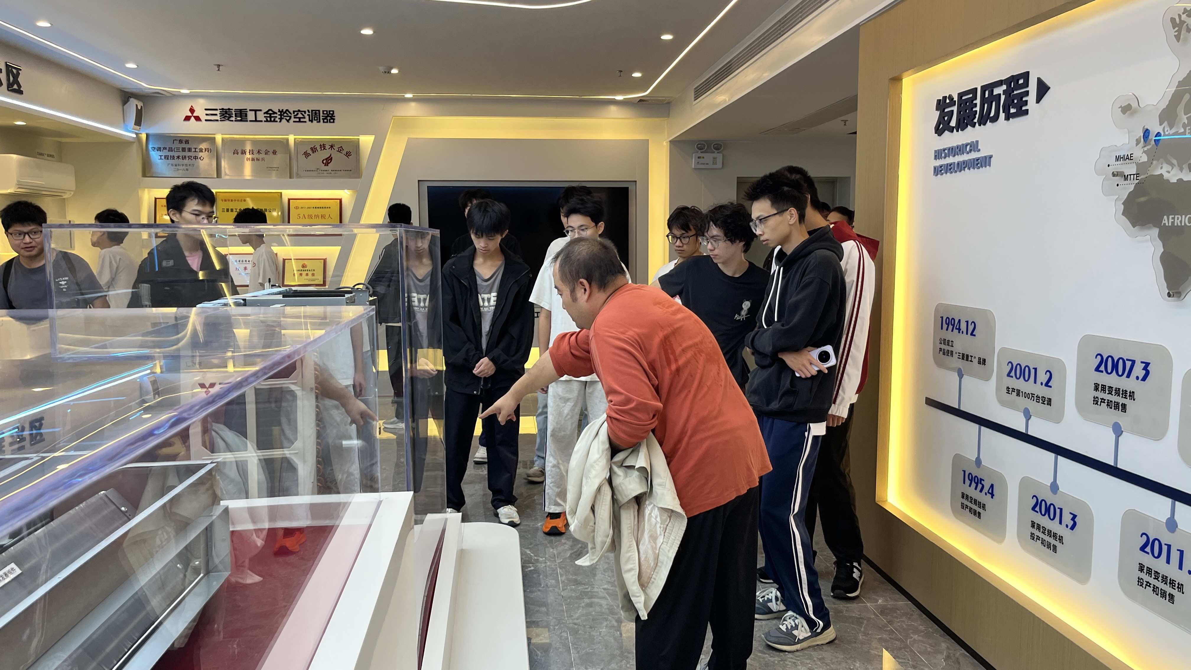 在相关负责人带领下,师生们还参观了集团合资企业——三菱重工金羚空调器有限公司的生产车间,认识自动化产线的运行模式与先进技术的实际应用,强化了对专业技术落地价值的理解。