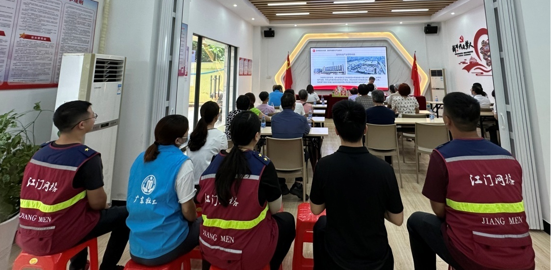 江海区委组织部、江海区国有资产监督管理局、江南街道有关负责人、新中社区党员志愿者及居民代表、金羚集团党员代表等参加活动。