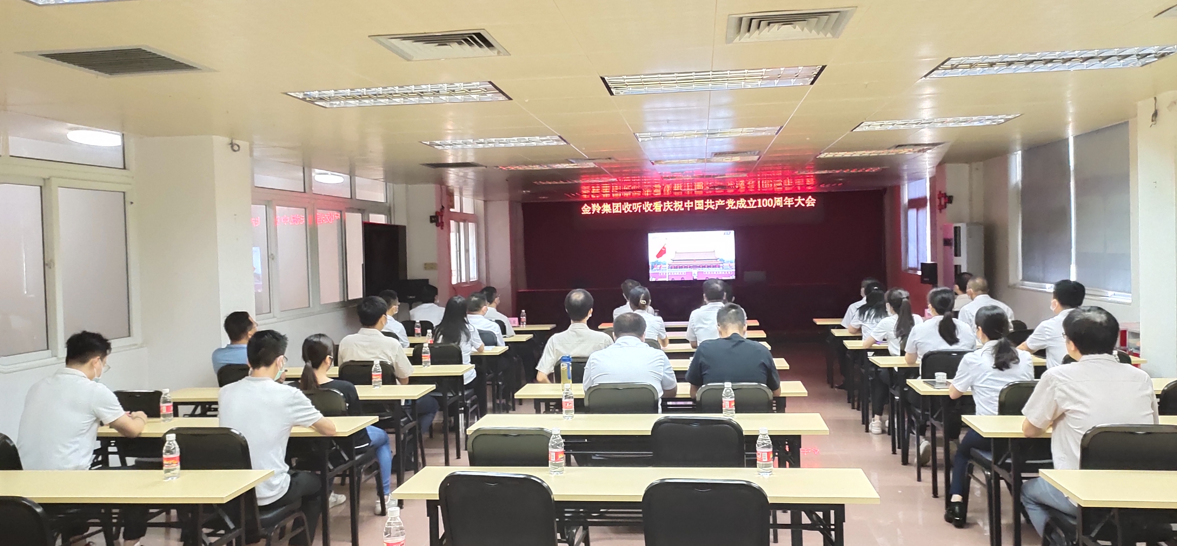 7月1日上午8时,庆祝中国共产党成立100周年大会在北京天安门广场隆重举行。金羚集团党委组织全体党员认真收听收看大会直播盛况,聆听习近平总书记的重要讲话。